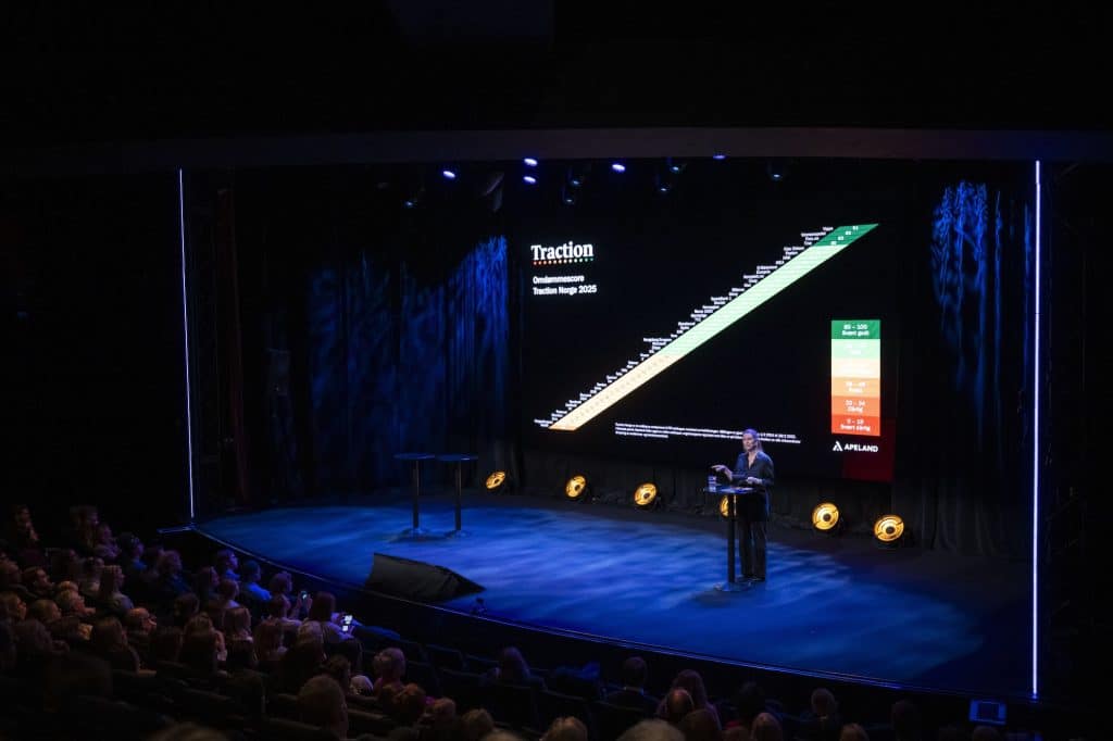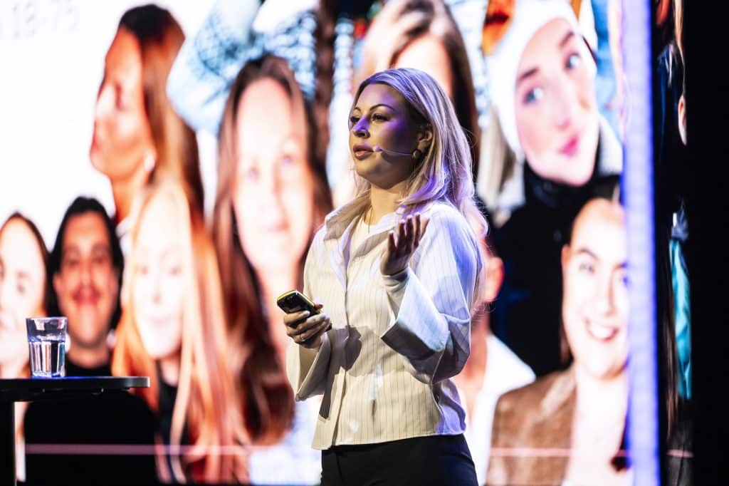 Traction 2026: Miriam Gressli Edvardsen fra Apeland lanserte årets omdømmevinner, som er Vipps for tredje året på rad. Foto: Katrine Lunke